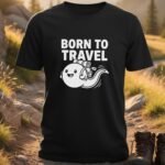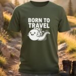 Embrace your wanderlust with this funny “Born To Travel” T-Shirt featuring a cheerful, adventurous “character”. Perfect for those with a happy spirit longing for exploration. Express your love for new journeys.