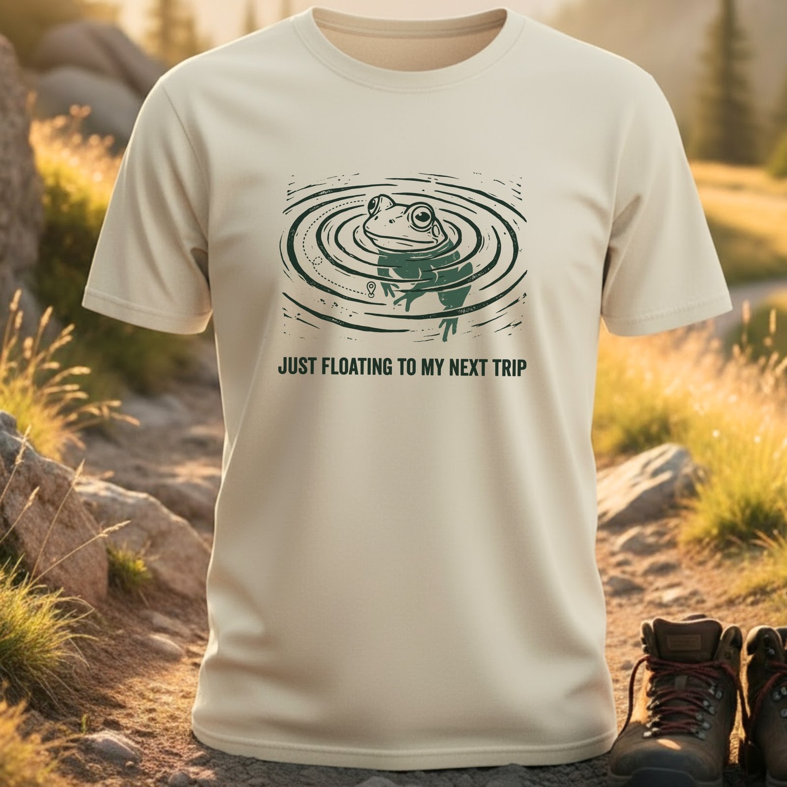 Embrace the ultimate chill-out mood with this unique frog design, celebrating the joy of easygoing adventures. Let the world know you’re always on the path to your next great journey, one float at a time.