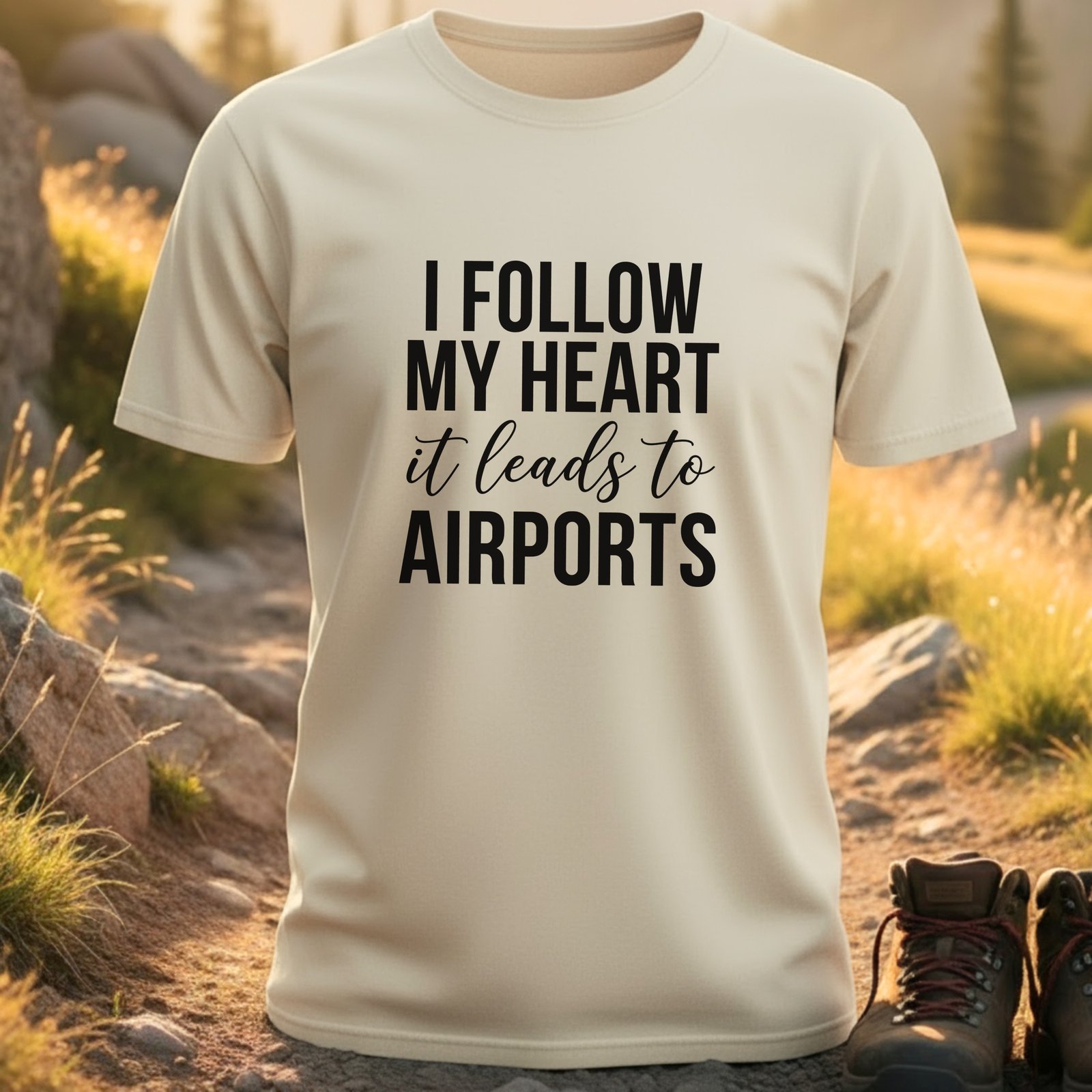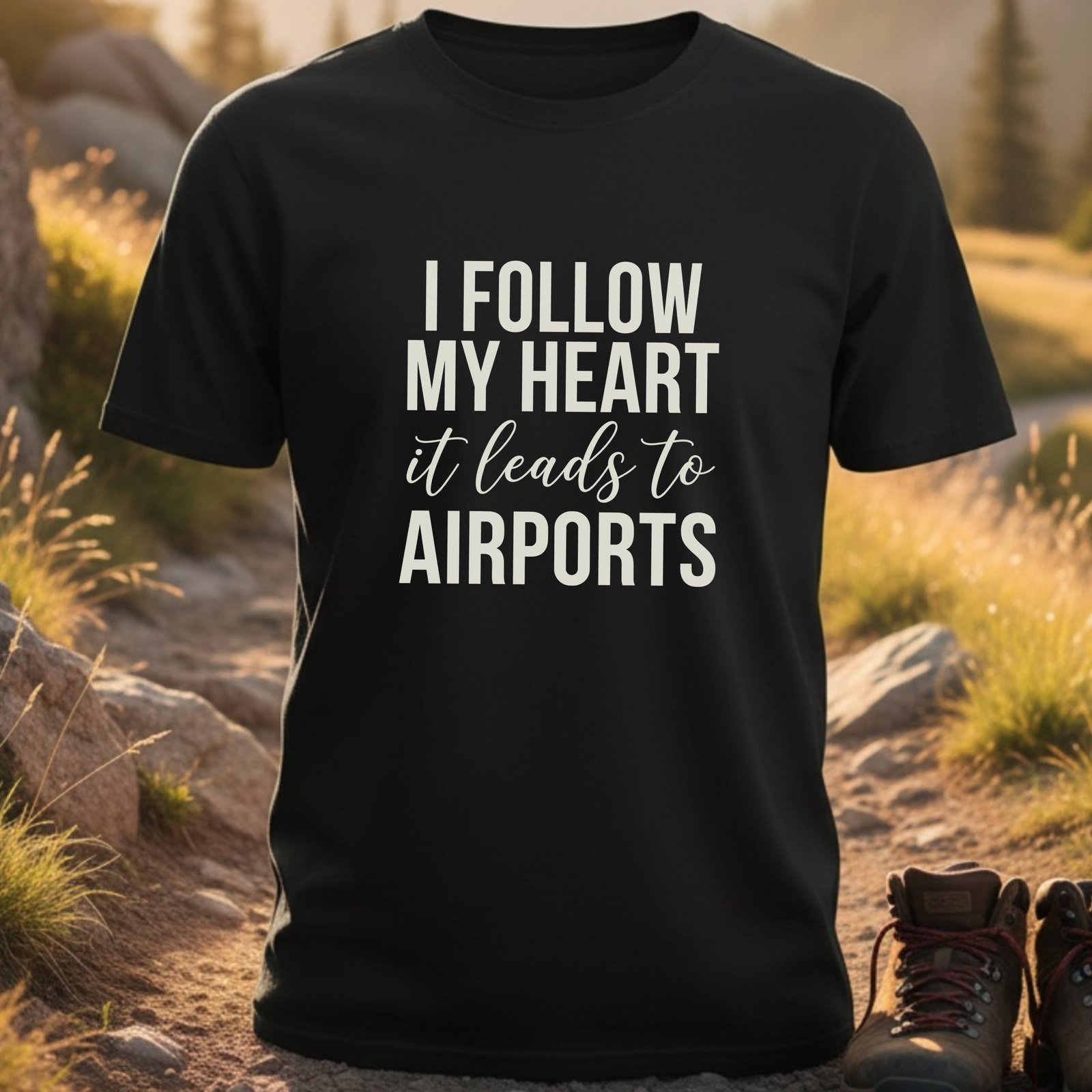 Celebrate wanderlust with ‘I FOLLOW MY HEART it leads to AIRPORTS’. This design inspires adventure, freedom, and the thrill of exploring new destinations. Perfect for any globetrotter.