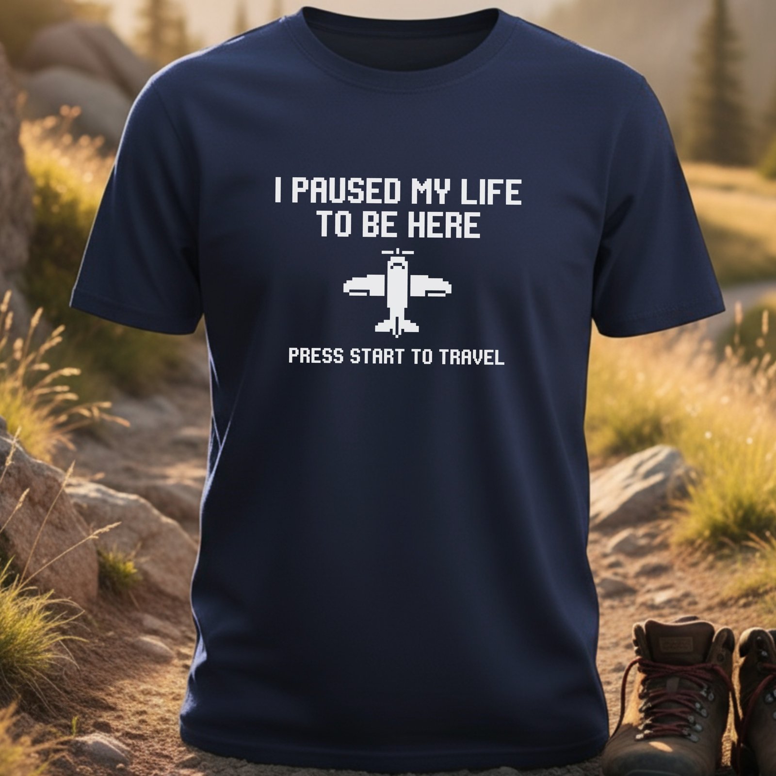 Pause your current quest and level up your wardrobe with this hilarious travel tee! Embrace adventure with a nostalgic retro gaming twist.