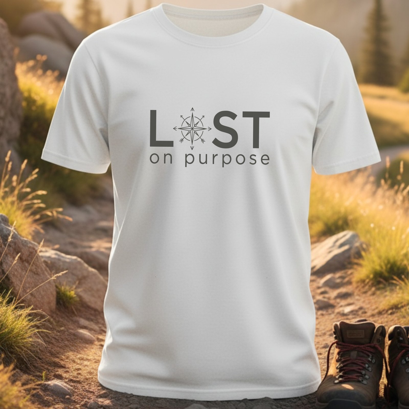 Embrace your unique journey with this inspiring “LOST on purpose” T-shirt. A compass design symbolizes adventure and finding your own path, empowering freedom.