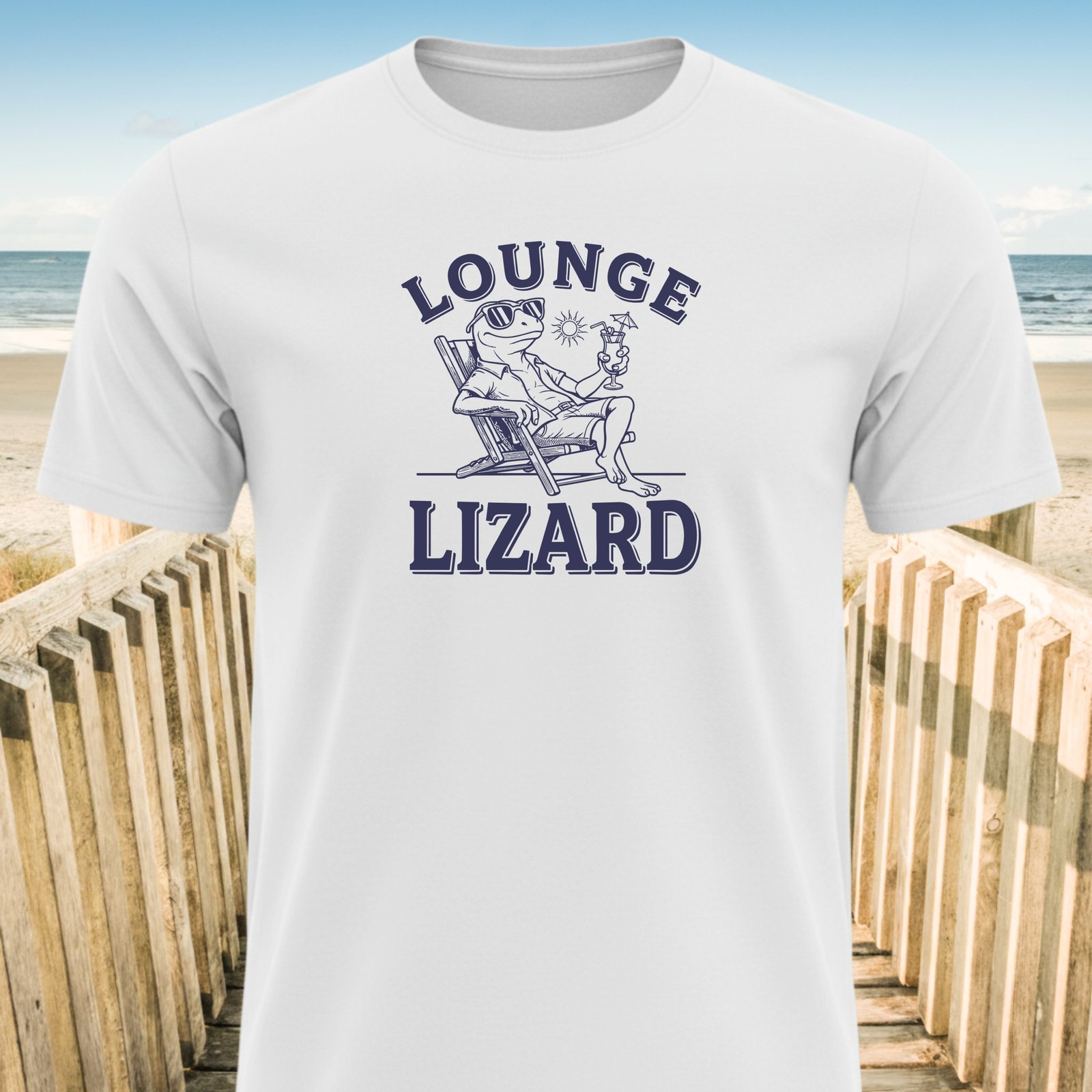 Get ready to chill with this Lounge Lizard vacation design. Featuring a lizard in a chair drinking a cocktail this design is perfect way to show your relaxing lifestyle!