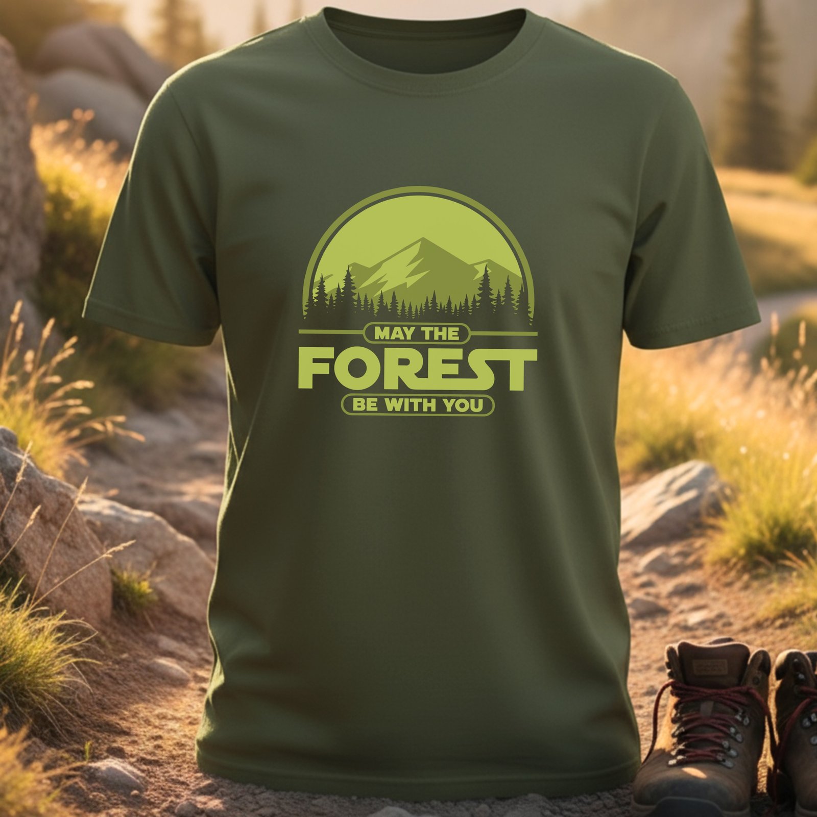 Show your love for nature with this unique design! “May The Forest Be With You” celebrates the outdoors and the beauty of trees mountains. Get yours today and explore!