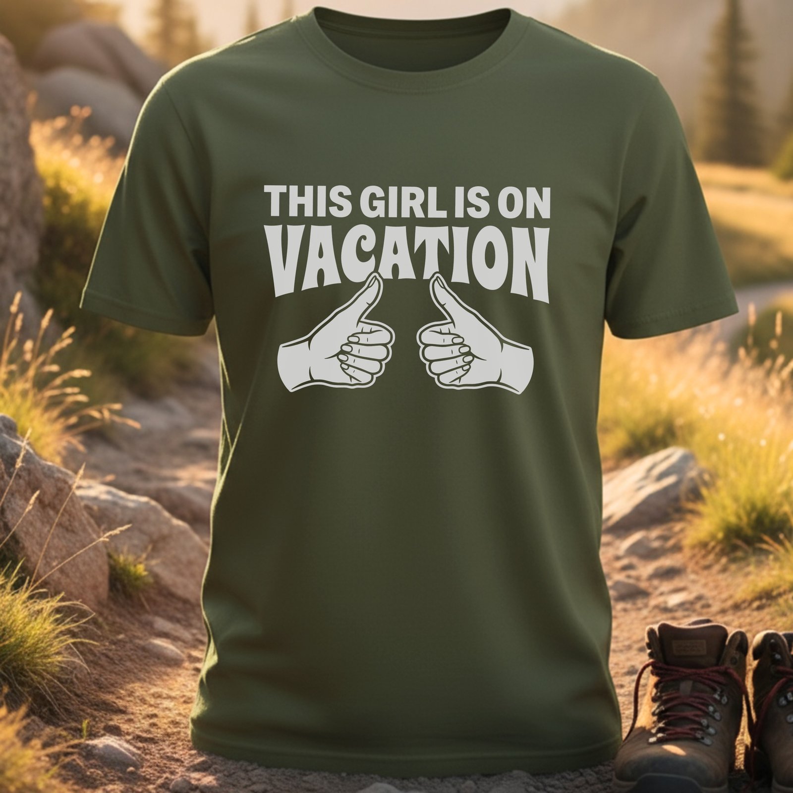 Express your vacation mood with “This Girl is On Vacation” T-shirt! This fun design with thumbs up celebrates the joy of travel and getaway moments for vacation.