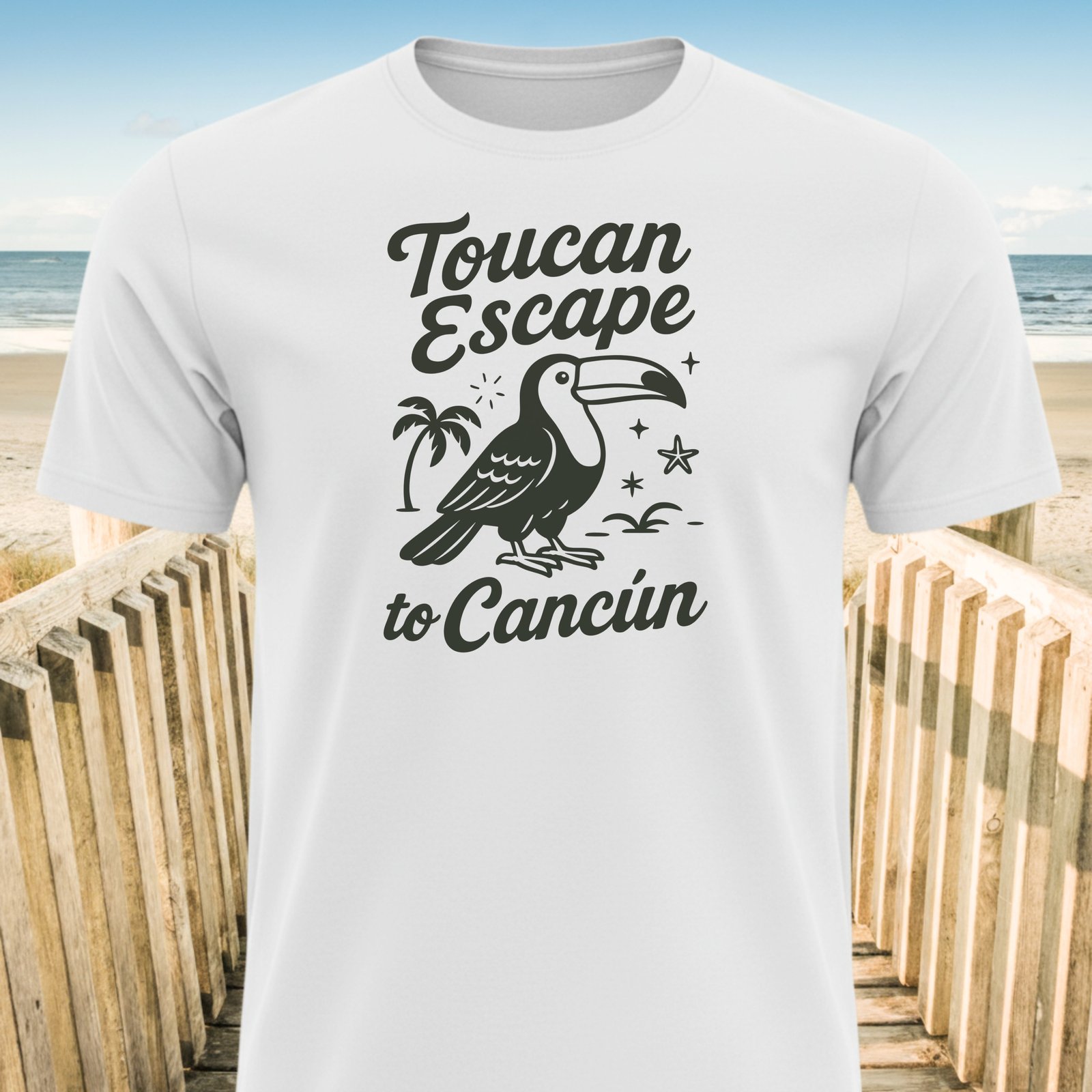 Embrace the Cancun vibes with this toucan design T-Shirt. Perfect for vacation or a reminder of your tropical getaway. Get yours today and show off your love for travel.