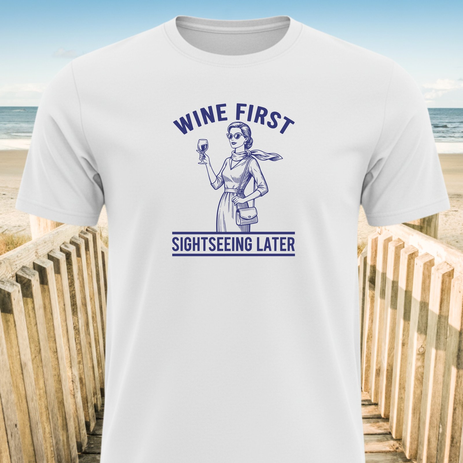 Unleash your inner travelista with this “Wine First Sightseeing Later” T-Shirt! Perfect for wine lovers and travel enthusiasts. Get yours now and travel with style!
